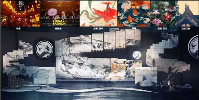 还有对花的表达,花的表达是国潮,因为她不单单是自然界的花朵,更是各种国风服饰下的如花美眷。舞台之上,多达八个的各式升降,三组不同形式的推拉车台,错落高低的舞台结构构成了丰富的舞台动线,从而使得舞台的演出也具有了丰富的变化。