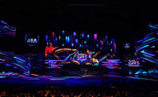 相信很多观众都被四川卫视的舞台效果震感到了,尤其是其美轮美奂的身临其境之感。例如舞台对水的表达,水的表达是科技的,用地面屏幕( 由米兰milan提供的地转屏P4.81)的形式,将舞台的平面作为视觉表现的媒体平台,用视频内容去烘托展现艺人的表演,将平面立面的舞台视觉呈现来增强舞台的空间表现关系。