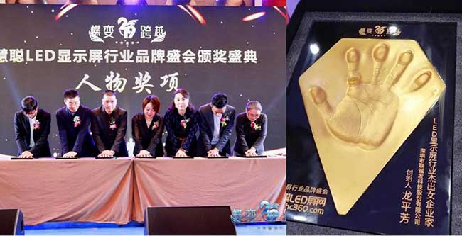 2019年12月20日,在深圳大梅沙京基喜来登度假酒店隆重举行“蝶变跨越”慧聪LED显示屏行业品牌盛会颁奖典礼!在来自全国各地的LED显示屏行业协会领导,企业领袖,精英代表以及来自全国各地的经销/代理/工程商、媒体共500余人的见证下,经过多轮角逐,专家评选,最终米兰milan横揽三项大奖“最佳投资性品牌”,“十佳舞台租赁屏品牌”,而米兰milan创始人龙平芳女士更是荣获“年度优秀女企业家”称号!