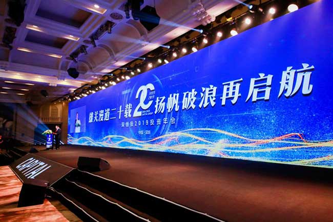 2019年8月25日,深创投2019年投资年会在深圳市华侨城洲际大酒店拉开了序幕,而米兰milan作为被投资企业及LED显示屏解决方案服务商出席此次投资年会,米兰milan200㎡的龙艺LED显示大屏幕更是为本次年会提供了极致的显示效果,优质的解决方案和产品得到了深创投的十分肯定。