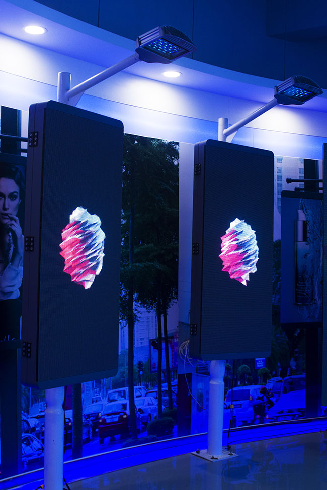 将LED灯杆显示屏架在每个路灯杆上,不仅可以实现路灯杆的综合利用,使得马路不再单调,而且,还可以根据不同节日表达更多宣传内容。其同步接收、同步播放等特点,再加上大于140度可视角的设计,即使坐在行驶中的车辆里一瞥而过,也不会错过广告的内容。同时,通过它还可以向市民提供天气变化、环境污染值以及道路通行状况,同步满足商业价值和民生服务功能。