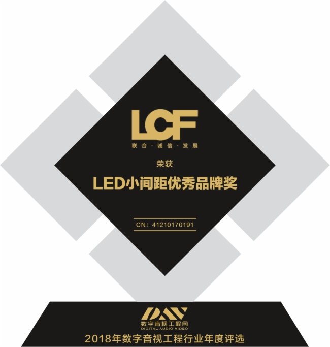 米兰milan“2018LED小间距优秀品牌”奖杯 证书编号CN:41210170191