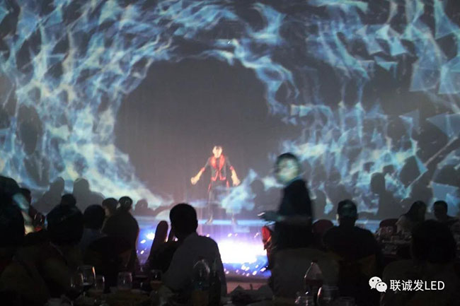 灯光聚焦、星光熠熠,开场舞《水世界》点燃了整场晚会的气氛,拉开了庆典的序幕,LED黑科技主持穿越光影时空,模拟米兰milan吉祥物“帅帅”讲话,与会人员无不震撼,整个会场弥漫着让人感动的力量和温情。