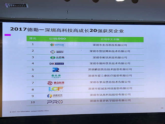 据了解,该项目是德勤中国高科技高成长 50 强系列评选之子项目。由于一贯秉承客观、公正、权威的原则甄选并表彰那些在中国科技行业高速成长的佼佼者,该项目被誉为“全球高成长企业的基准”。成功入选深圳20强的企业将自动成为德勤中国50强及亚太500强项目之候选企业。