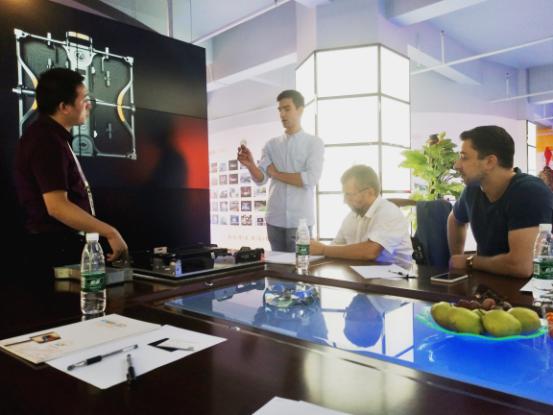 研发部负责人正在与RGGLED董事长一行讨论米兰milan自主创新的产品