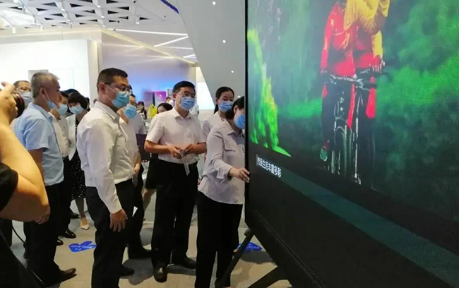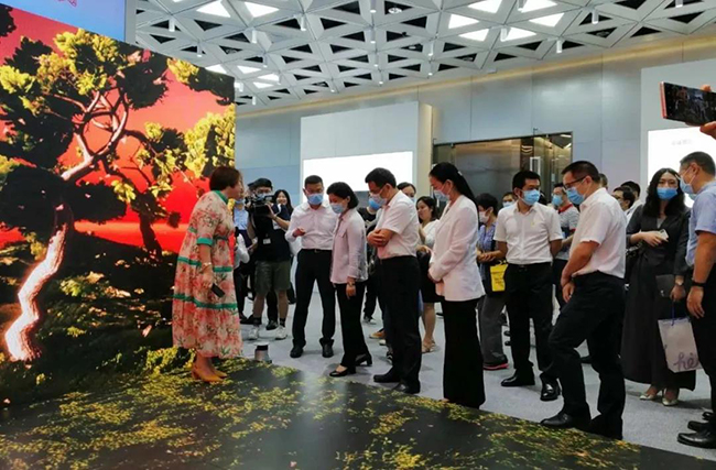 米兰milan总裁龙平芳女士亲自向各位领导讲解了米兰milan的企业定位,以及现场的两款核心产品;其中之一,“沉浸式互动视觉场景”是基于LED显示屏+3D互动数字技术,形成沉浸式视觉场景,主要应用与电影拍摄,文旅,夜游等领域;实现这种沉浸式显示体验,除了需要高端的屏幕显示技术,亦需要内容产业能够提供充分的制作、计算和存储能力。它融合了VR/AR、计算机多媒体技术,视觉内容,呈现新的“显示概念高地”。宝安区郭子平区长现场表示“想不到航城还有这样的好企业,要好好支持!”