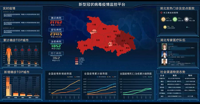 LED显示屏系统、疫情数据信息、人口数据信息、GIS系统及视频指挥等相关业务信息子系统,围绕实战化、可视化、全景化等要求,将各级疫情防控指挥部建设成为集信息中心、调度中心、决策中心为一体的信息支撑平台。