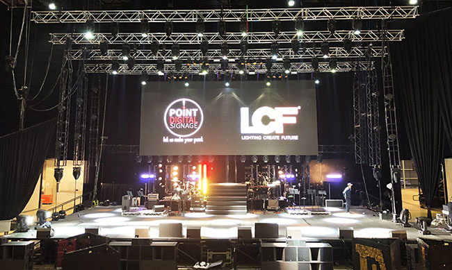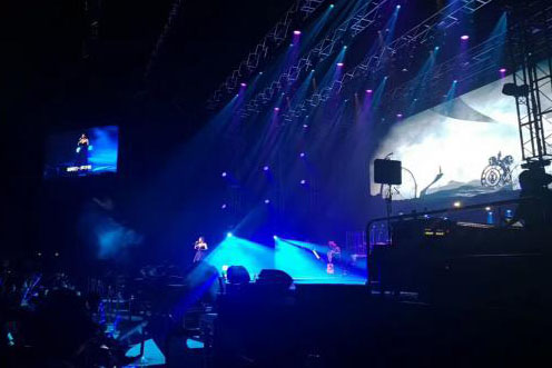 LED大屏幕,侧方以两个LED小屏为辅助。这三块显示屏均采用米兰milan自主研发的租赁屏P4.81,500X500mm的箱体尺寸,轻松实现拼接要求,模组前后维护,智能显示模块,产品使用稳定,通过利用现代声光电的渲染,在产生强烈的舞台艺术效果的同时也不喧宾夺主。