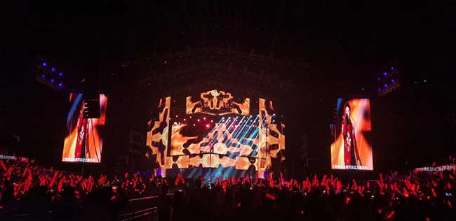 为了能够给粉丝带来更好的现场视觉效果,主办方选择了米兰milan作为现场效果显示技术支持,而米兰milan也是携带了最新研发的产品“龙腾”出击此次演唱会现场,在舞美造型,灯光效果和VR视觉、屏幕特效显示技术上都十分的用心。
